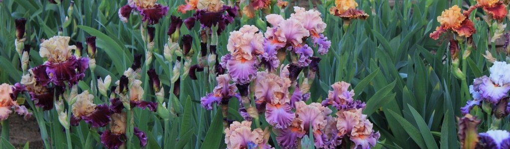 Ирис Гуд он Я – сланцевые стандарты к ажурным краям становятся маслянно персиковыми, горизонтальные фолы – жемчужно белые, к краям становятся янтарно персиковыми, пылающие оранжевые бородки.