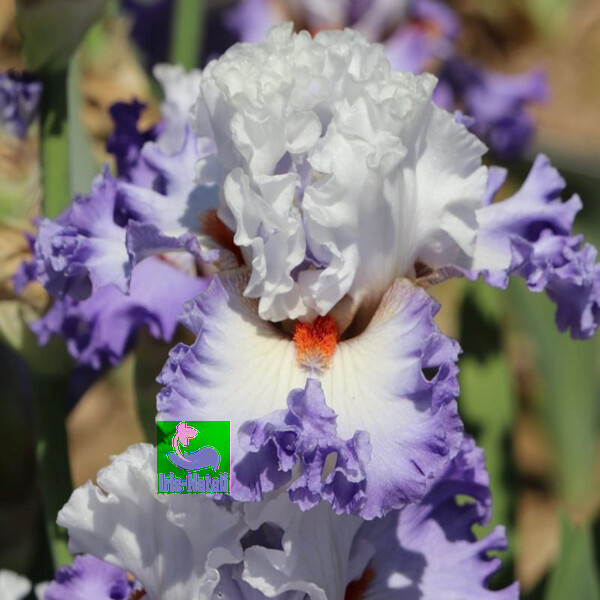 Casting Call Jonson 2022,Сладкий аромат. Стандарты белые с легким бледно-лиловым румянцем у основания. Средние лавандово-синие оттенки с более светлым оттенком в центре, становящиеся более глубокими по краям. Довольно большие густые бороды мандаринового цвета, склоняющиеся к рыжему. Красиво сформированные, сильно гофрированные и слегка ажурные цветки держатся на хорошо разветвленных и покрытых бутонами стеблях.