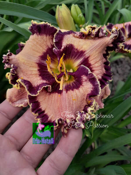 Дуже багатий, шикарний сорт. Гарний рожево-ліловий окрас з яскраво вираженим вишневим оком і такої ж досить широкою окантовкою і золотистим кантом. Улюбленець селекціонера.