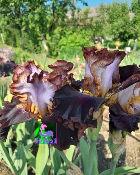 | Яркий дюймовый золотисто-коричневый ободок обрамляет белые стандарты. Рубиново-красные фолы имеют небольшие белые отметины вокруг старых золотых бородок. Чрезвычайно сильнорослый и обильноцветущий, с 7 бутонами на красивых стеблях и приятным сладким ароматом |