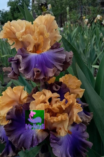 Тру Калэс – прекрасный биколор, маслянно – желтые стандарты с легкими лиловыми вливаниями в основаниями, фиолетовые фолы, немного светлее в сторону края, переходящие в сиренево – желтоватую кайму, ярко – оранжевые бородки.